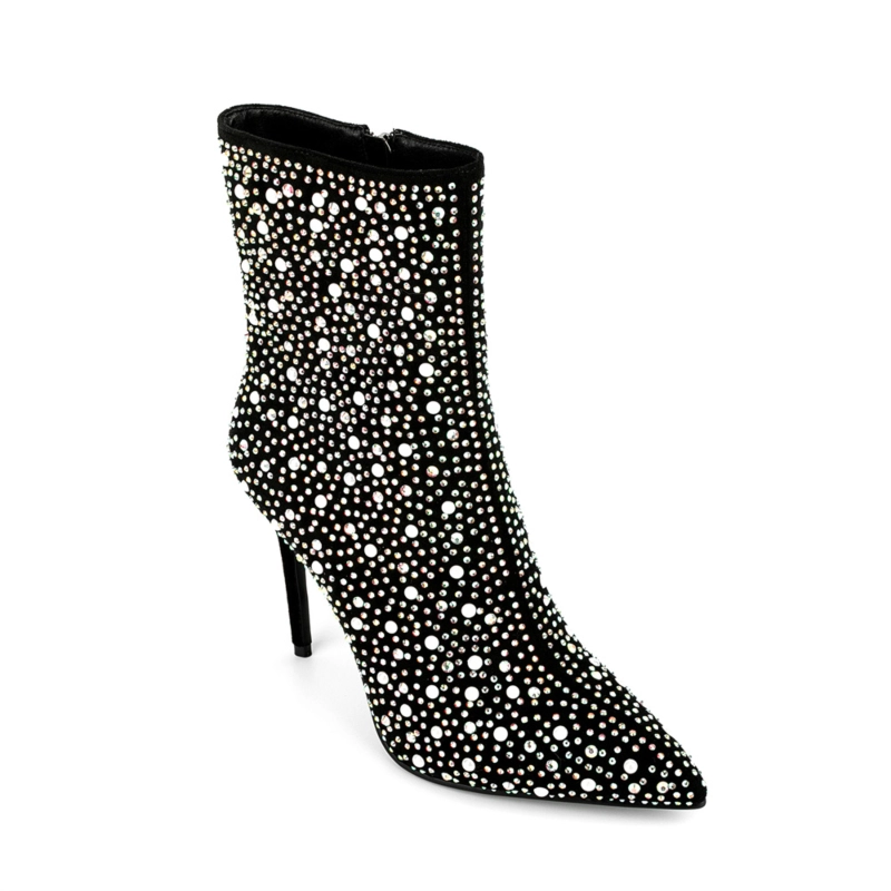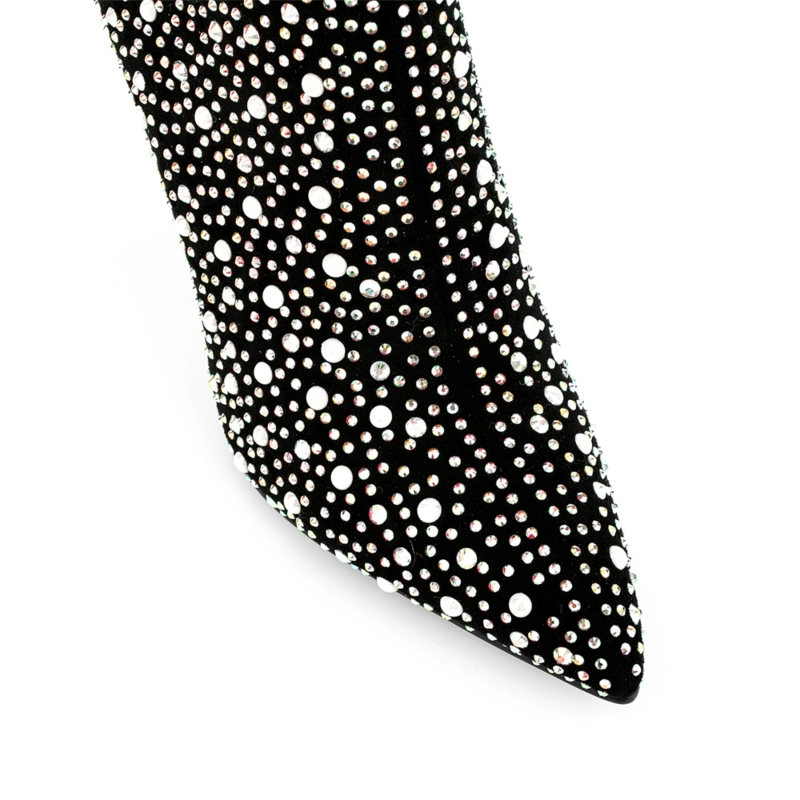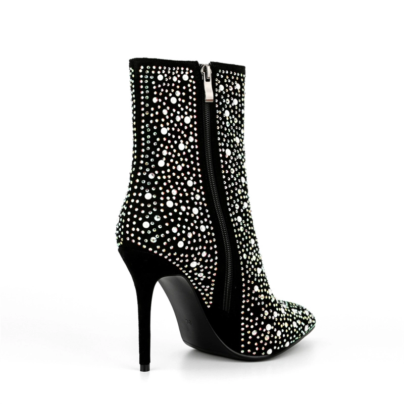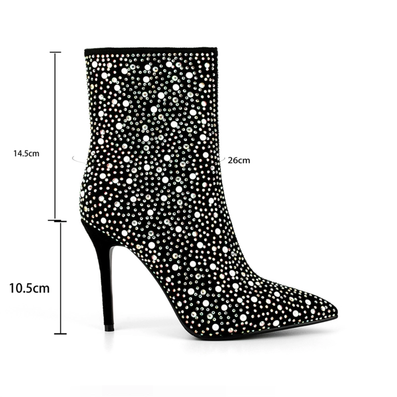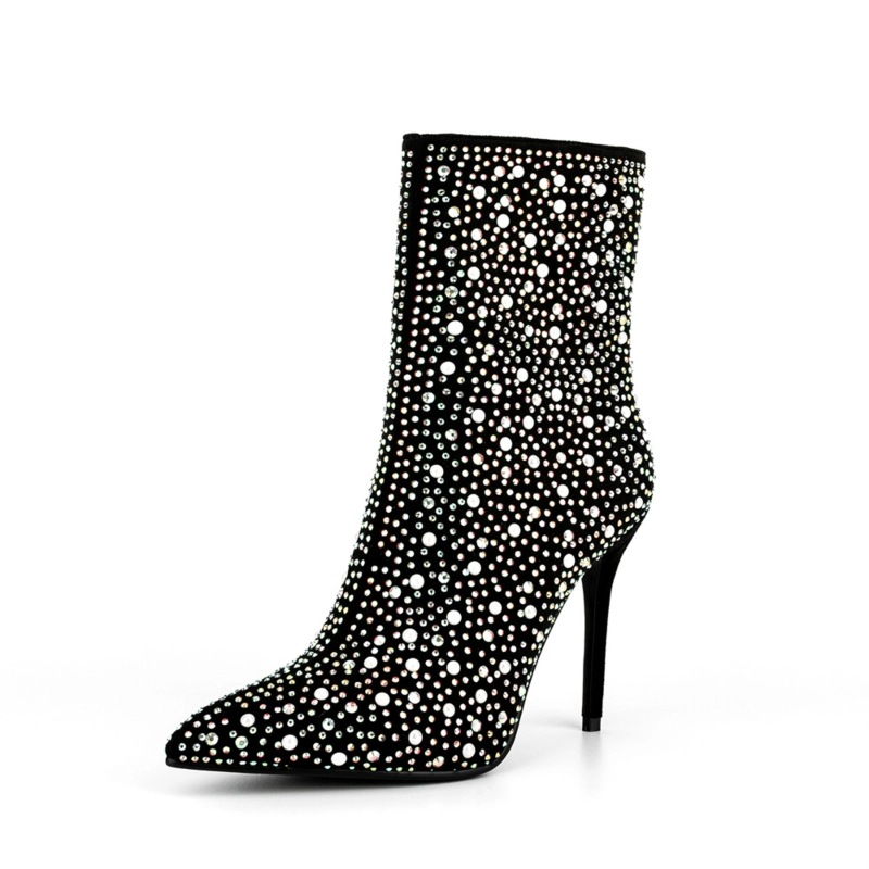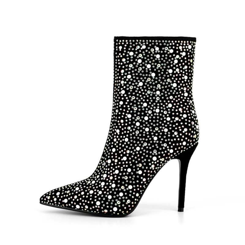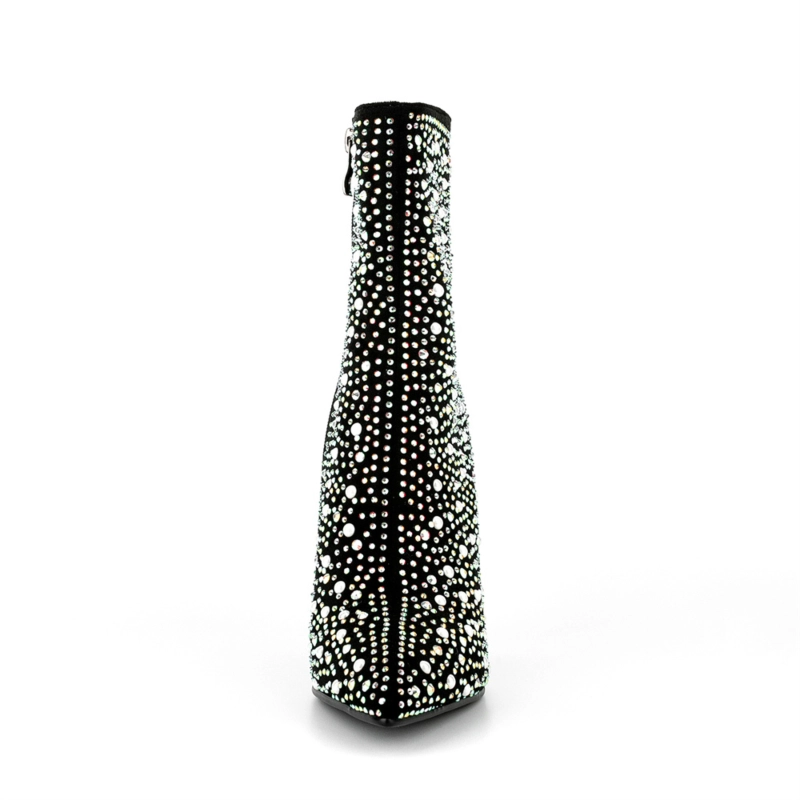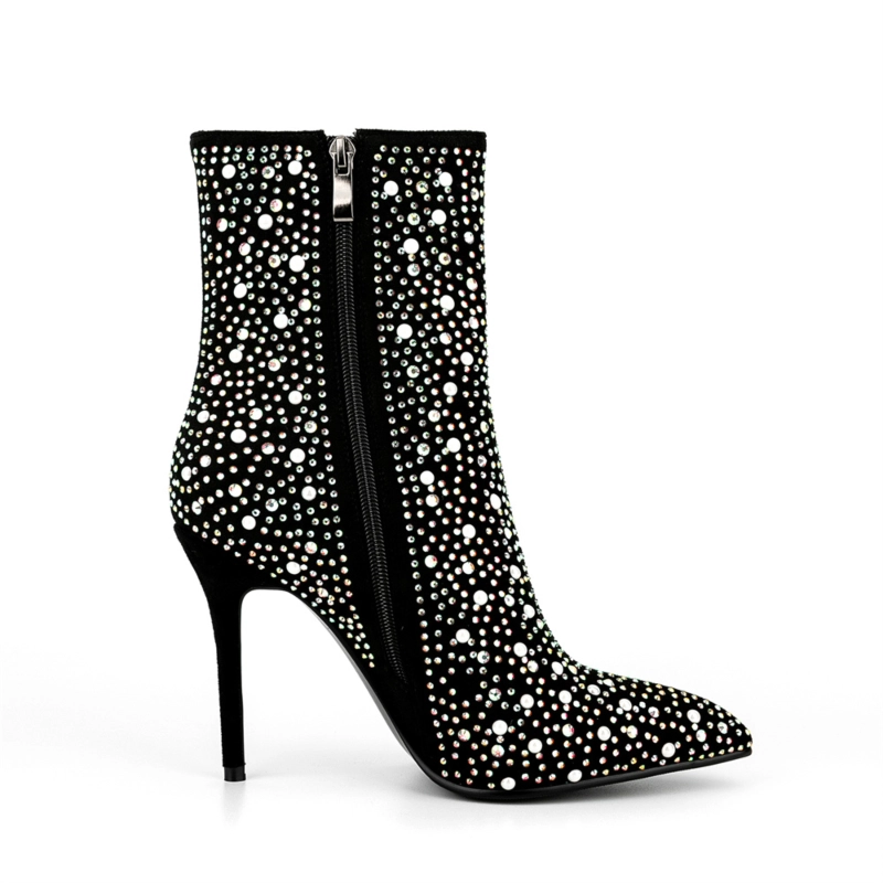 Black Rinestone Stiletto Heel Pointed Toe Ankle Boots