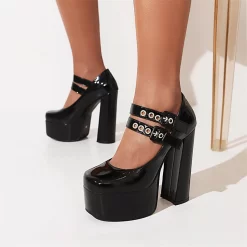 Platform Mary Janes with chunky heel have drawn much attention to the fashionable shoe trends. This is a Y2K pump heel with rubber sole, platform, chunky heel, double strap for conveniently adjusting the size of the Mary Jane shoes.