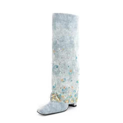 Be the first to review “Denim Fold Over Boots Colorful Sequins Knee High Boots Chunky Heels” Cancel reply