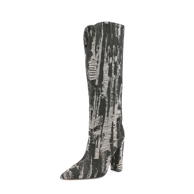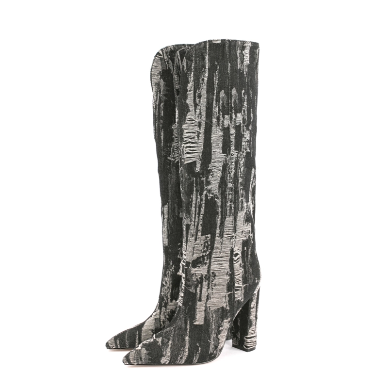 Be the first to review “Denim V Cut Knee High Boots Pointed Toe Chunky Heels Long Boots” Cancel reply
