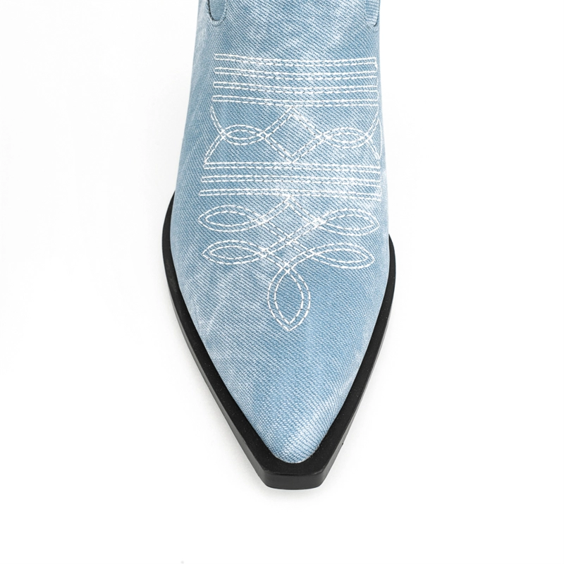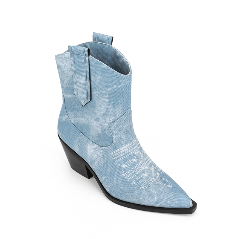 Embroidery Denim Block Heel Cowboy Ankle Boots