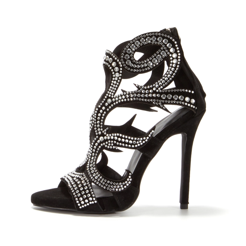 Rhinestone strappy sandals have been around for years, but there’s a sleeker look taking over the streets. We can’t help but dive into the party vibe due to the sandal’s super shiny crystal decor and put-together feel. Women’s rhinestone stiletto-heeled sandals are here to say HI.