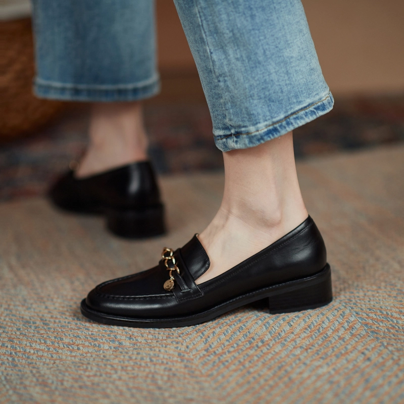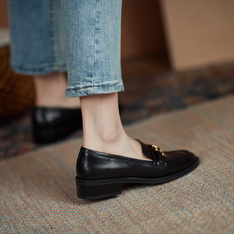 Be the first to review “Leather Gold Buckle Round Toe Flats Loafer Spring Shoes” Cancel reply