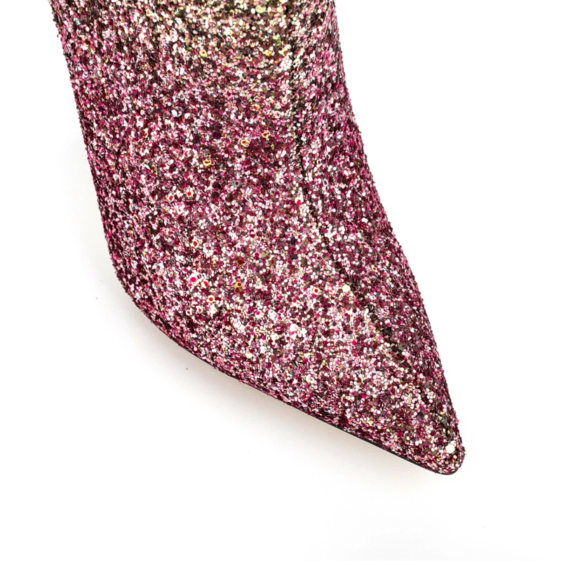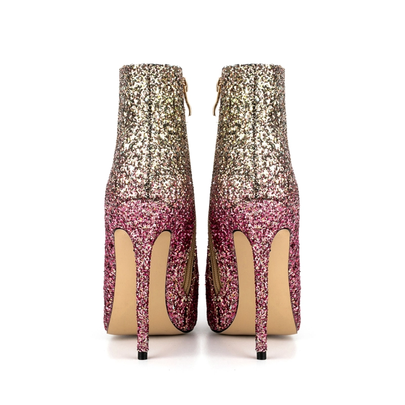 Be the first to review “Pink And Gold Gradient Color Glitter Stilettos Ankle Booties Pointy Toe Short Boots” Cancel reply