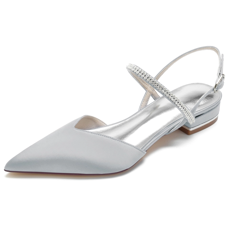 Satin Rhinestone Slingback Pointed Toe Flat Sandals