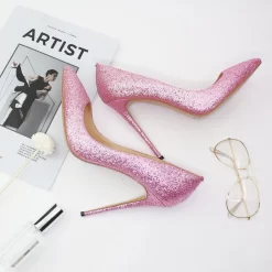 Sequin embellished stiletto heels with pointy toe and any party are meant to be together. Sparkly wedding party evening heeled pump shoes, along with jackets, and tops, are the must-have accessory items of any party outfit, and are just perfect to shine brightly like stars, while also adding a special flavor to even the simplest and most boring looks. With classic 12.0CM/4.7″ stiletto height, female sequined pointed toe heeled shoes elongate your legs for the best elegance.