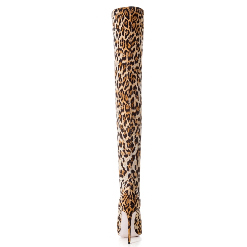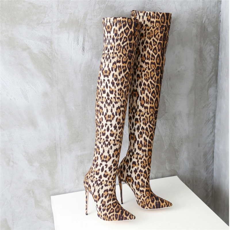 Sexy Leopard Printed Dress Boots 12cm High Heel Thigh High Boot