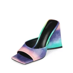 Square Toe Slide Sandal Spring Gradient Block Heel Shoes