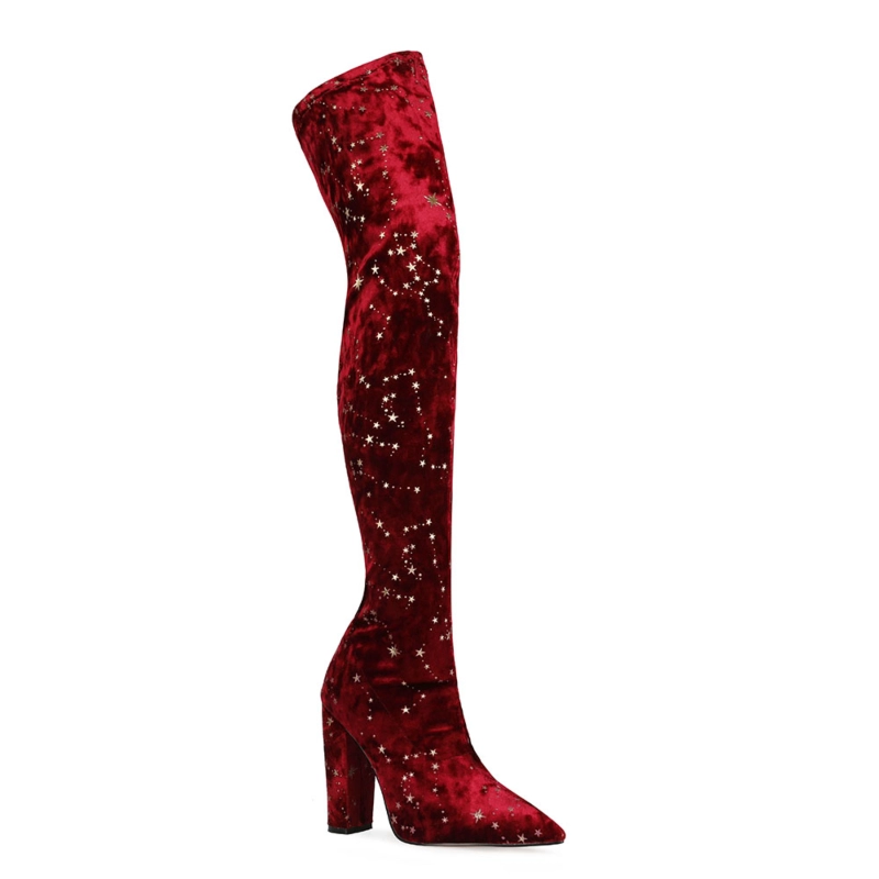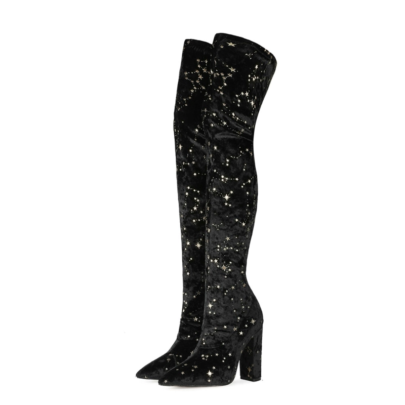 Versatility doesn’t mean have to mean boring. Choose from the classic over the boots to the block heel pointed toe boots and the velvet shining star boots, plenty of colorful incarnations. These sexy high heel boots deliver a lux, feminine look that’s chic and stylish.