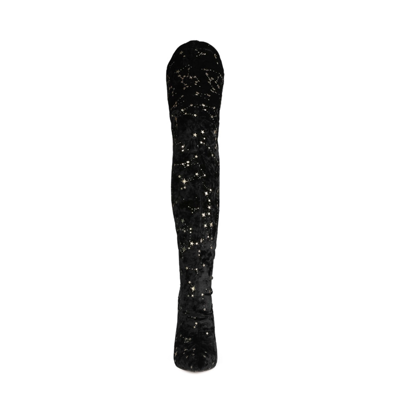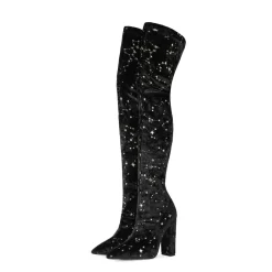 Stars Pattern Velvet Thigh High Boots with Block Heel
