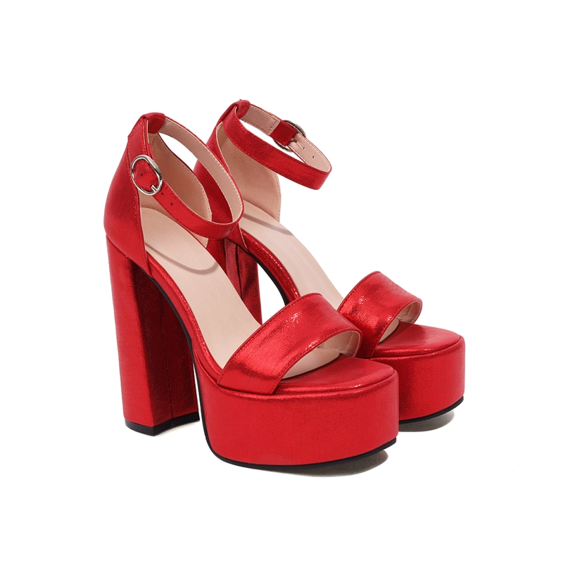 Trend Shiny Summer Open Toe Chunky Heels Platform Sandals