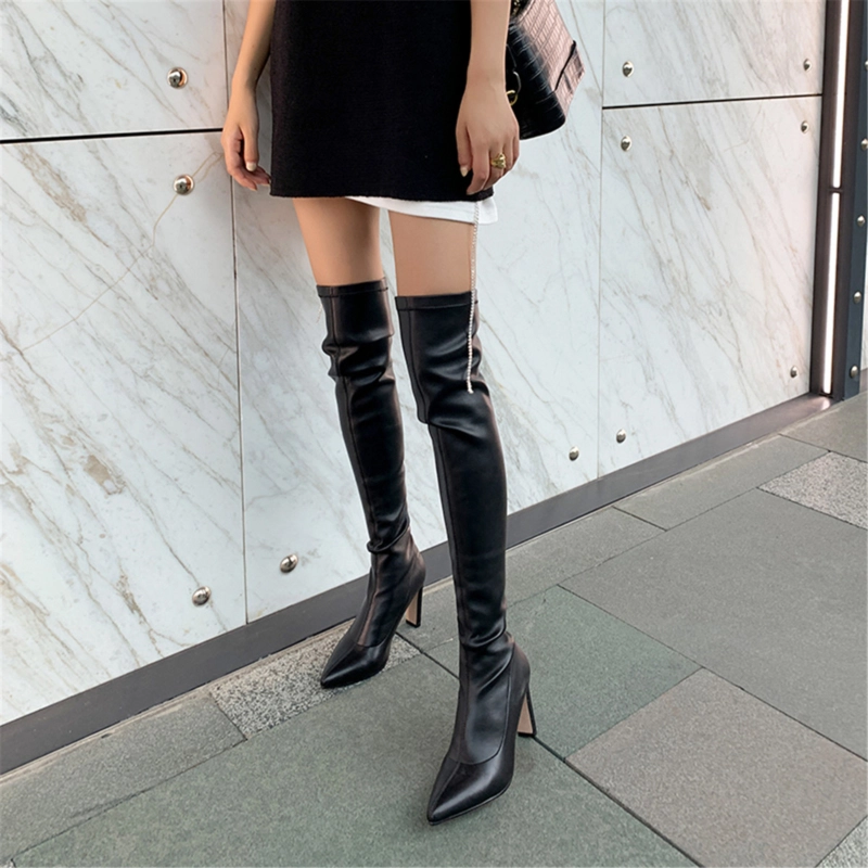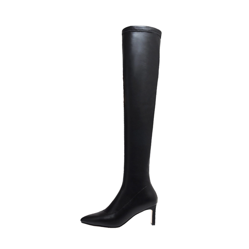 Winter Pull-on Elastic Heeled Thigh High Boots