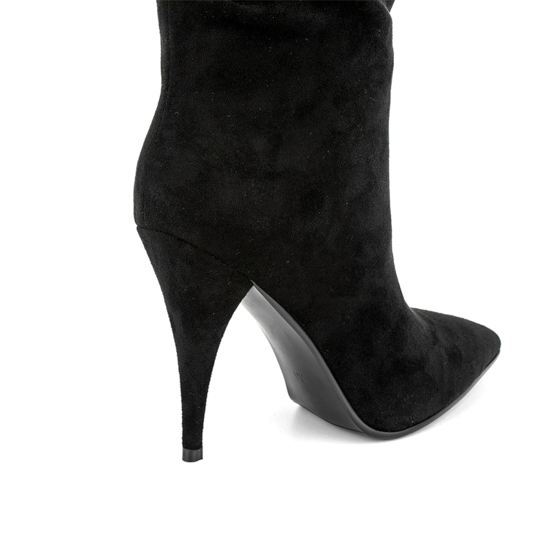 Women’s Black Suede Pointed Toe Slouch Boots Stilettos Wide Calf Boots