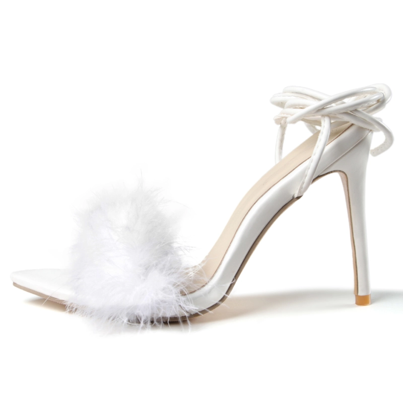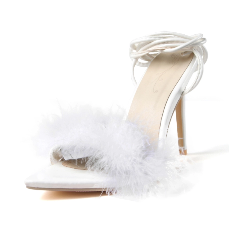 Women’s Furry Feather Open Toe Stiletto Heel Strappy Sandals