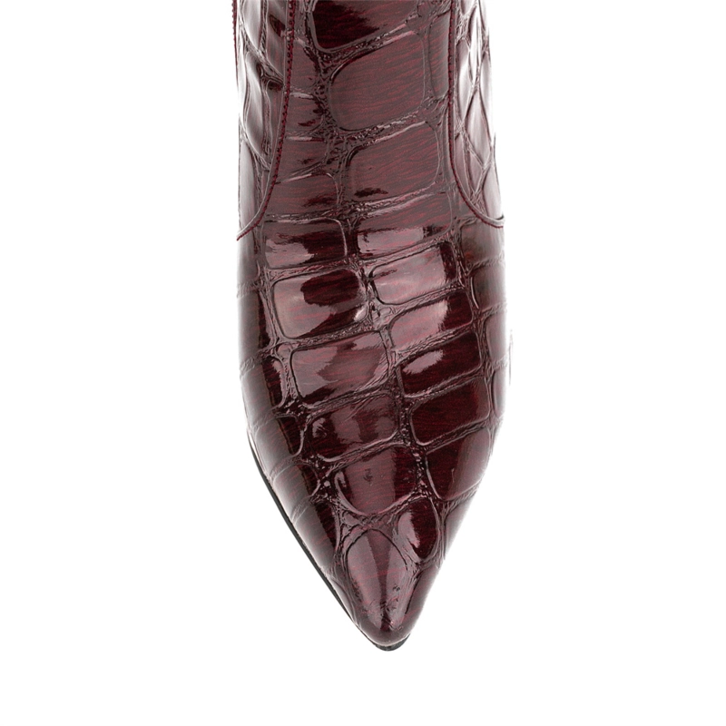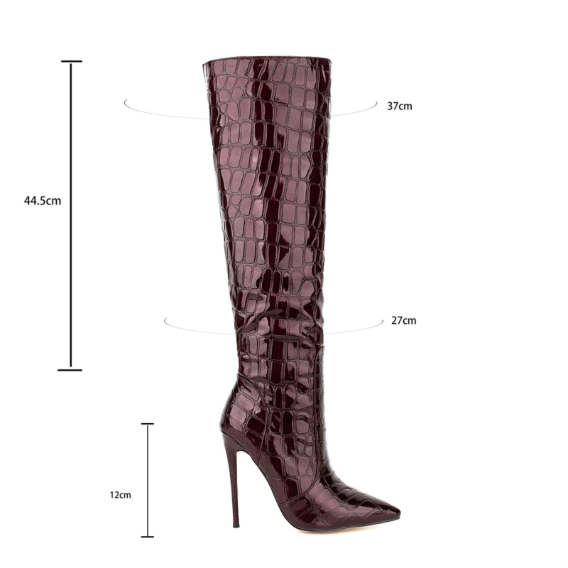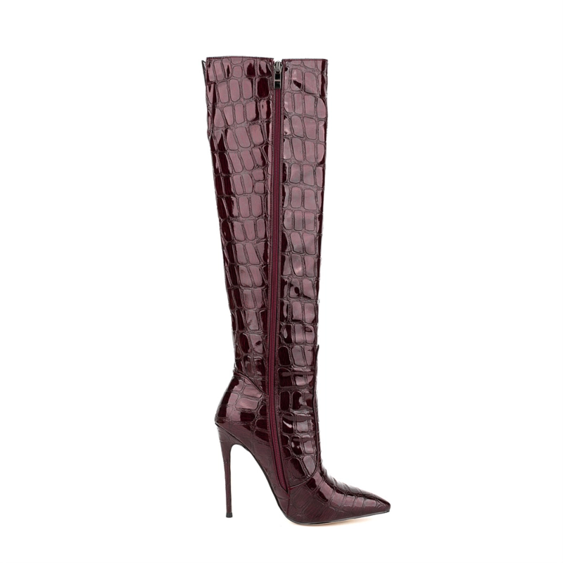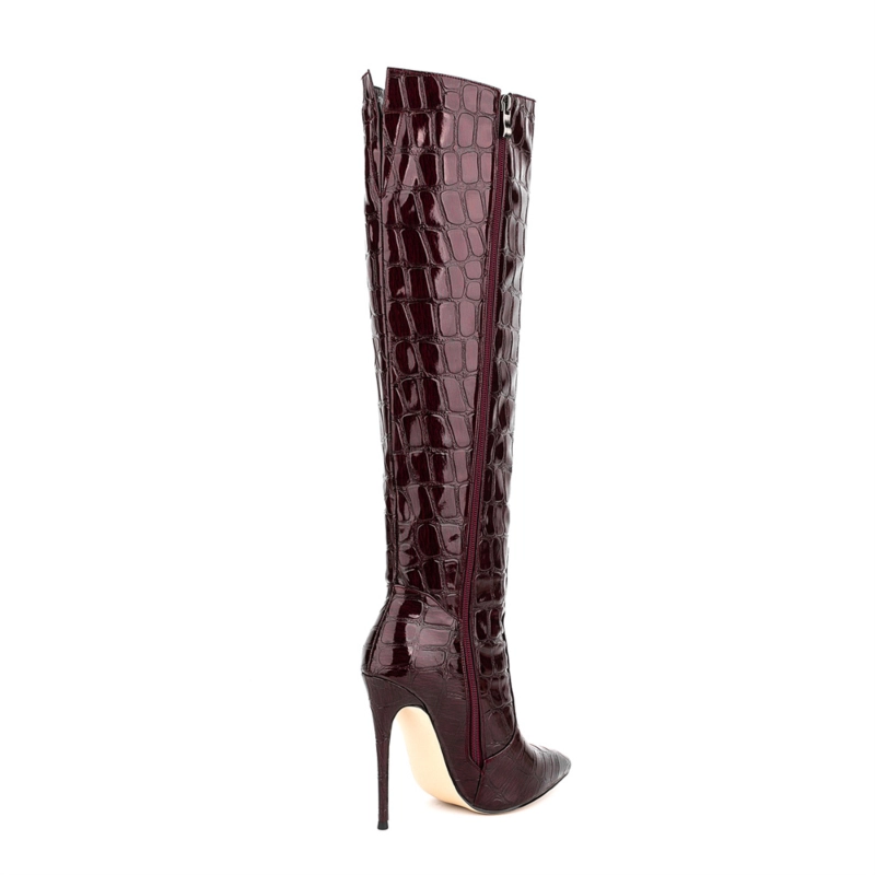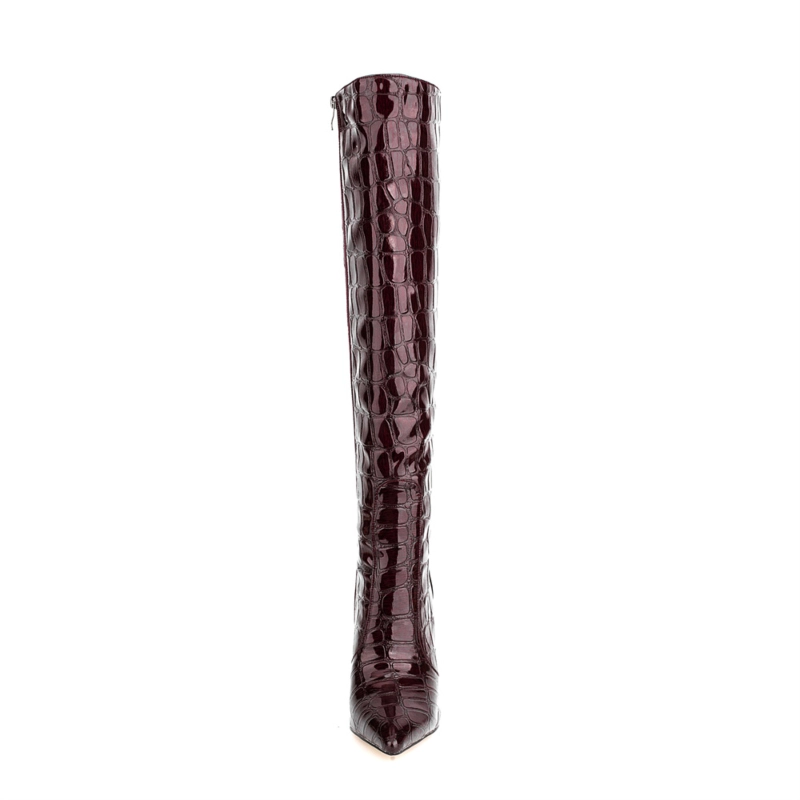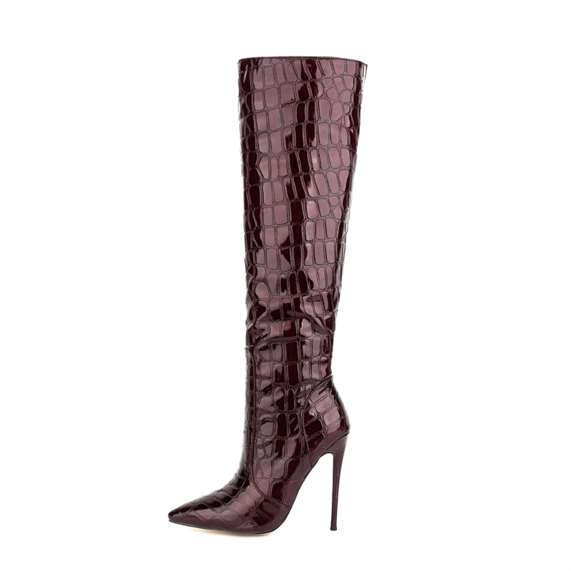 Women’s Maroon Stone Printed Stilettos Pointed Toe Knee High Boots