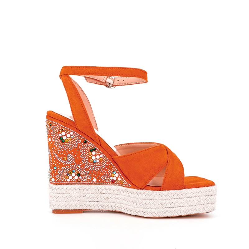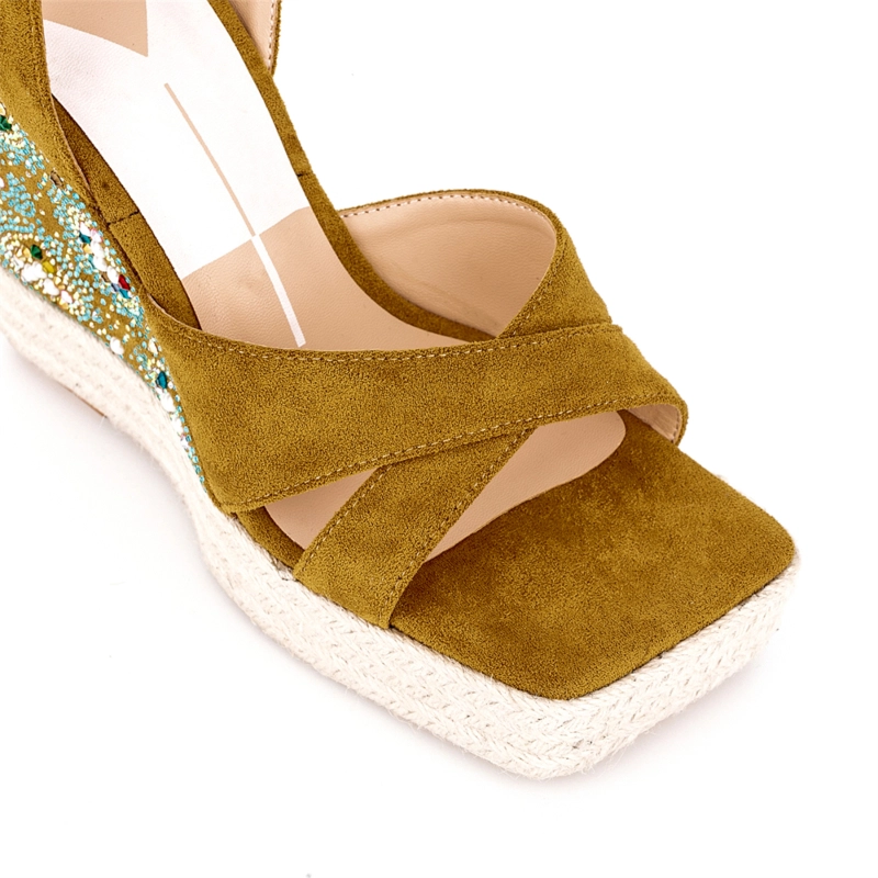 Women’s Suede Open Toe Rhinestone Wedge Heel Ankle Strap Sandals