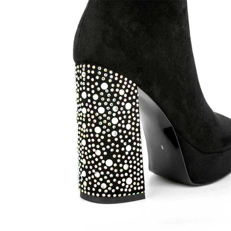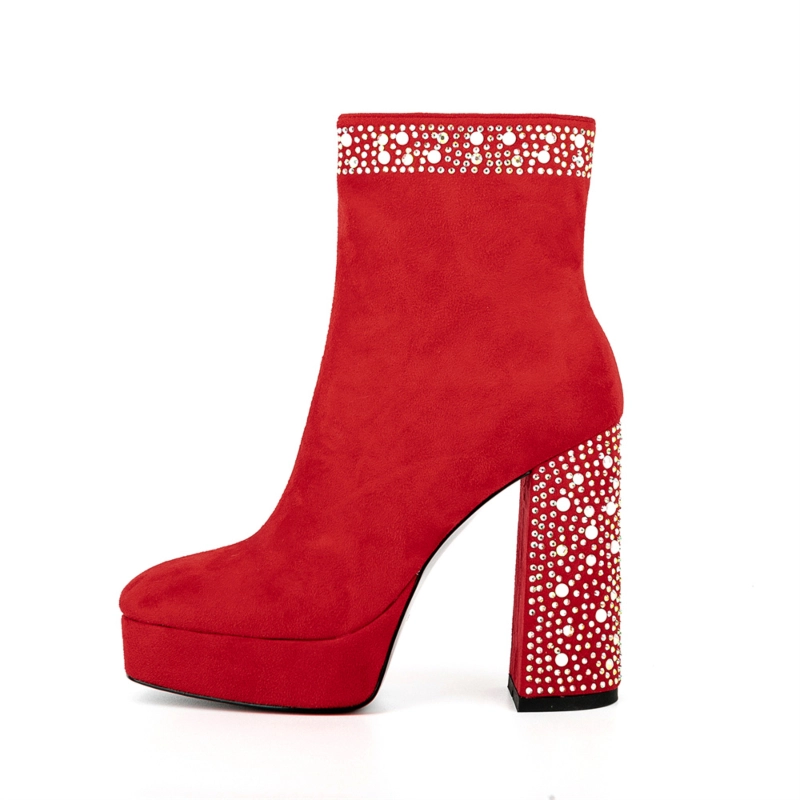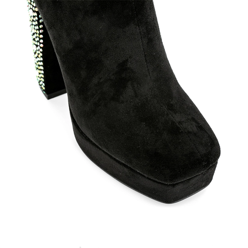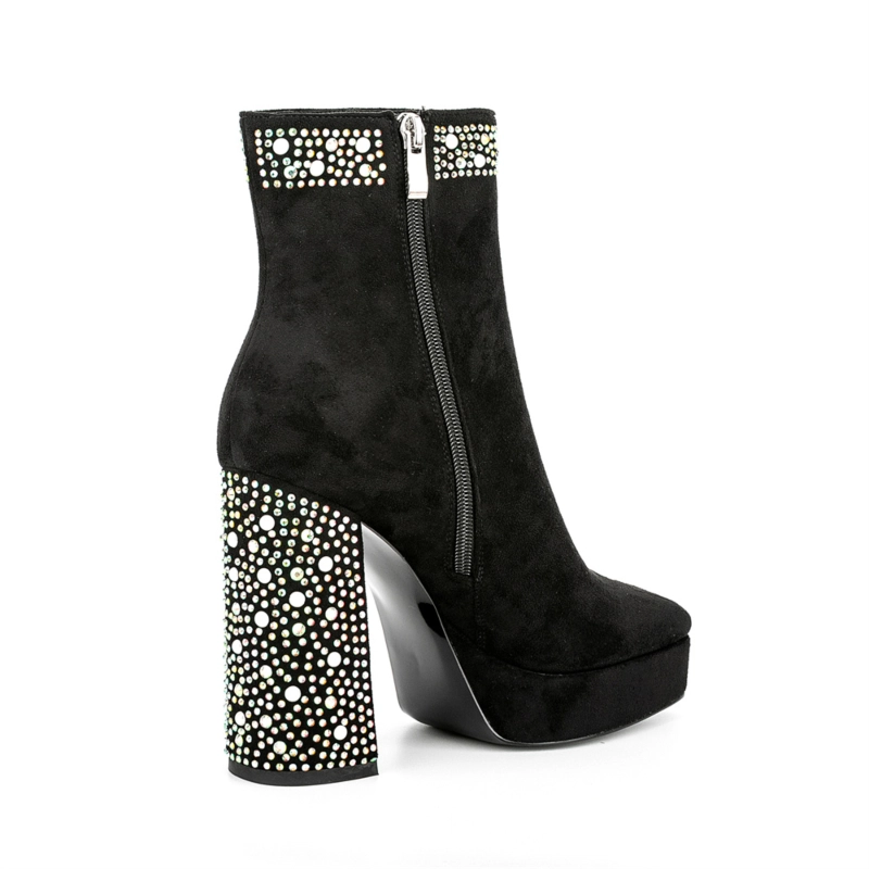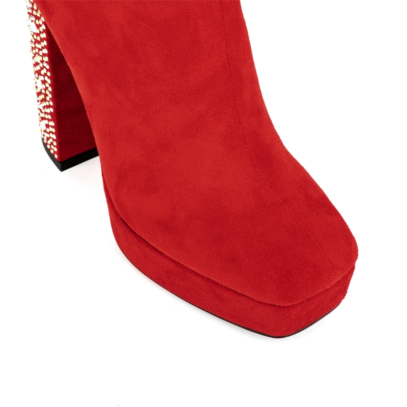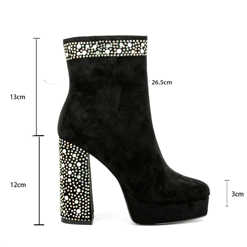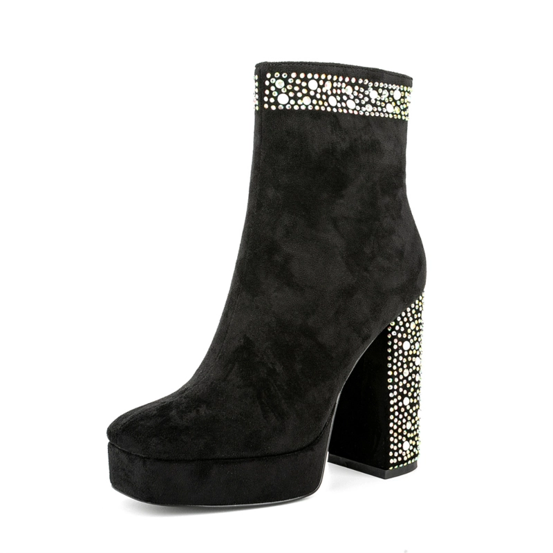 Women’s Suede Platform Chunky Heel Ankle Booties With Rhinestone