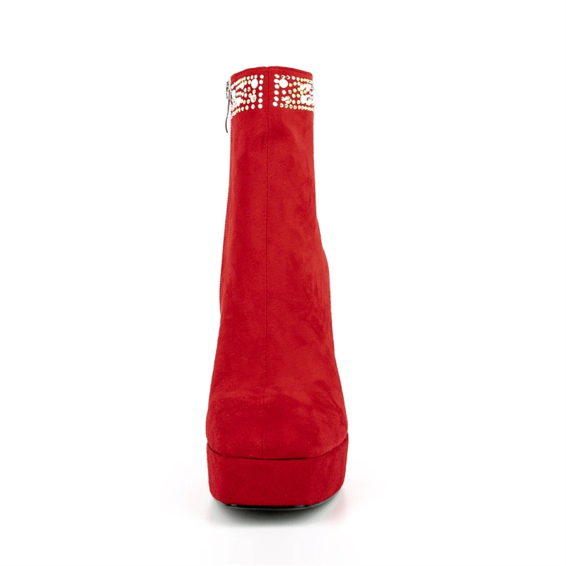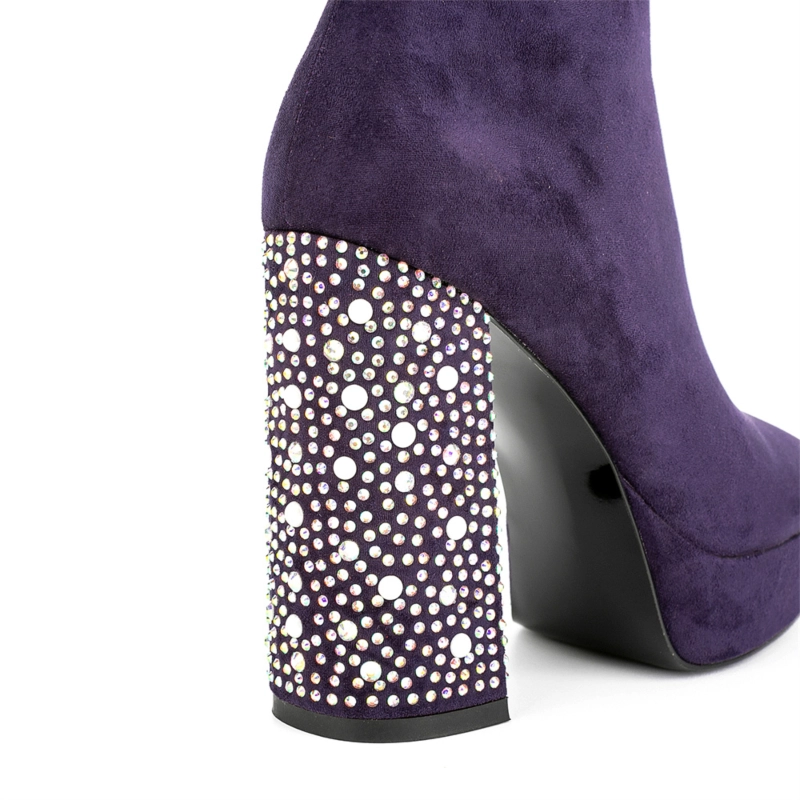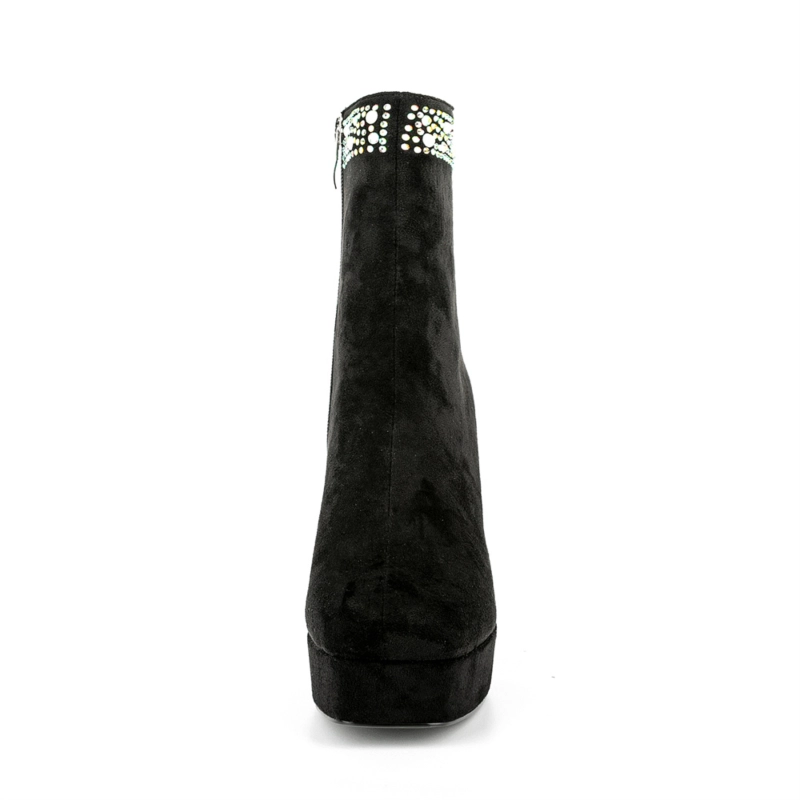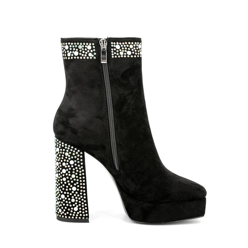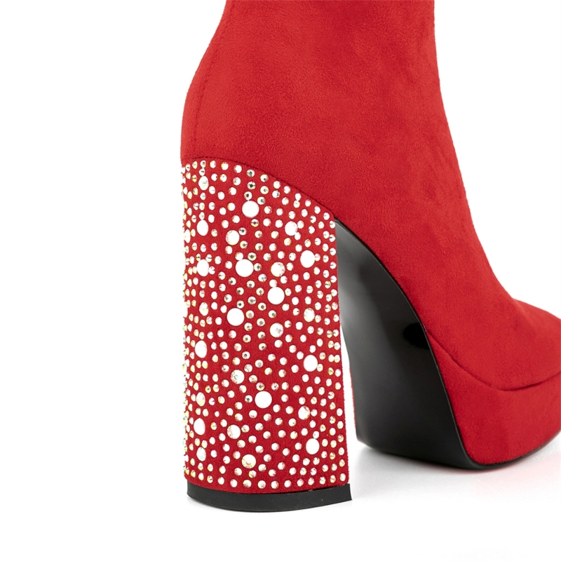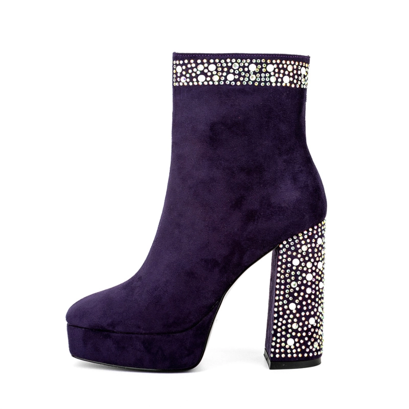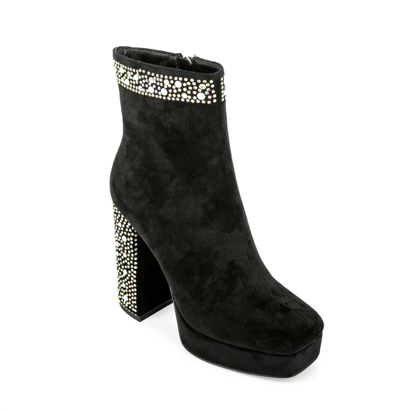 Women’s Suede Platform Chunky Heel Ankle Booties With Rhinestone