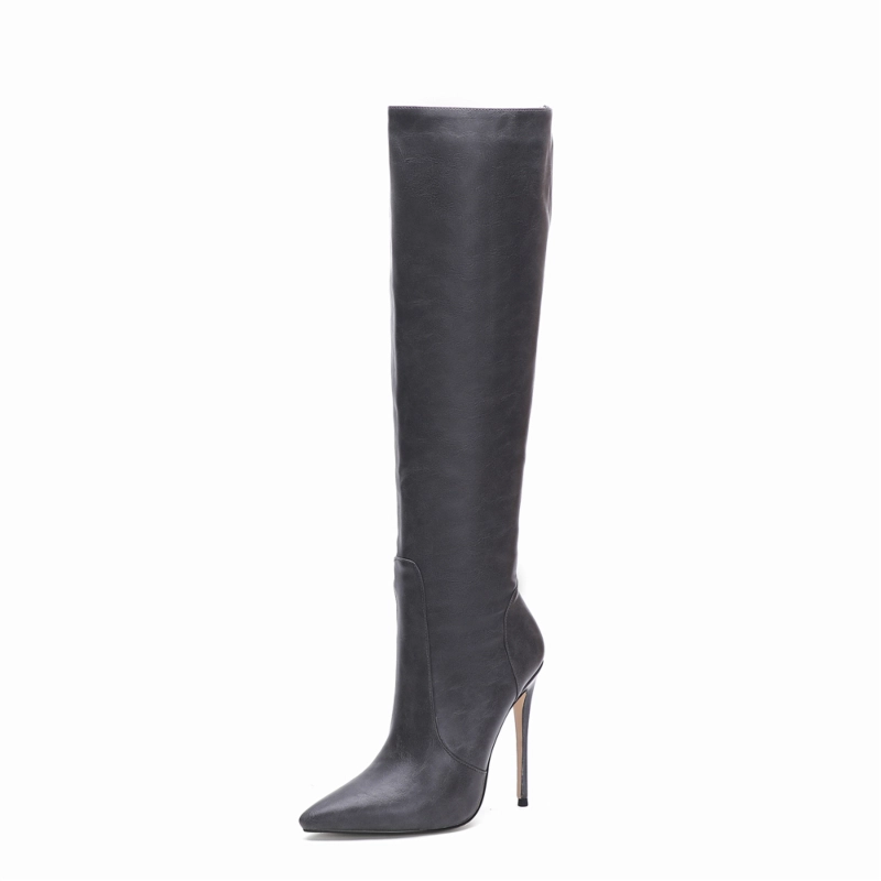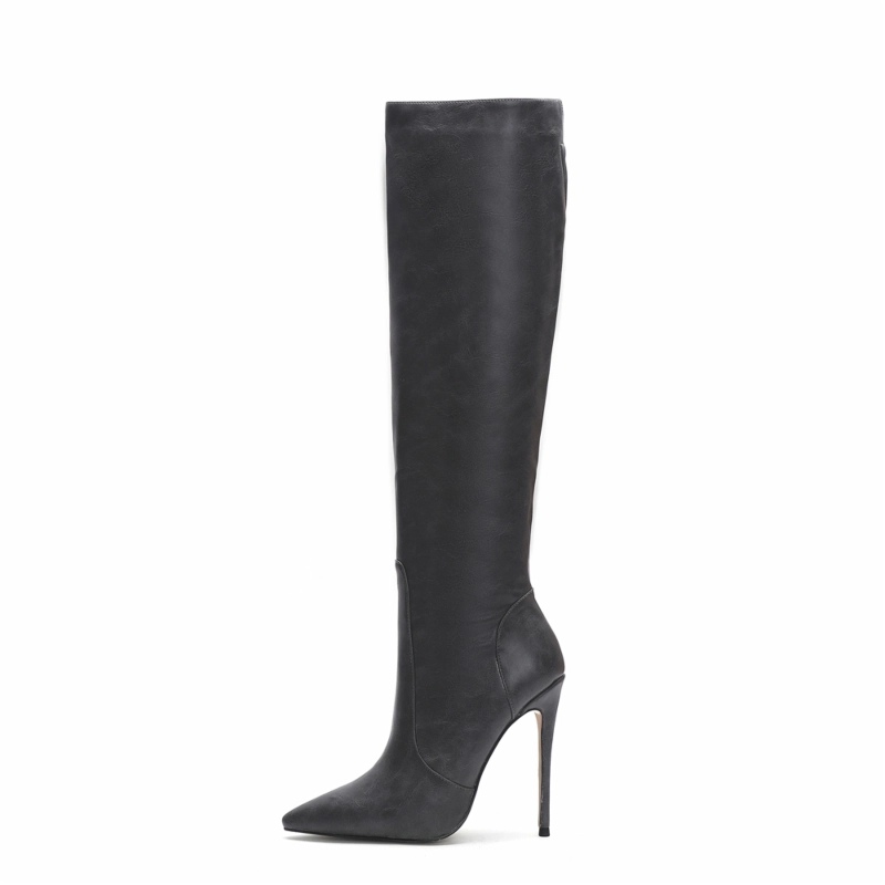 Women’s Vegan Leather Pointed Toe Stilettos Knee High Boots