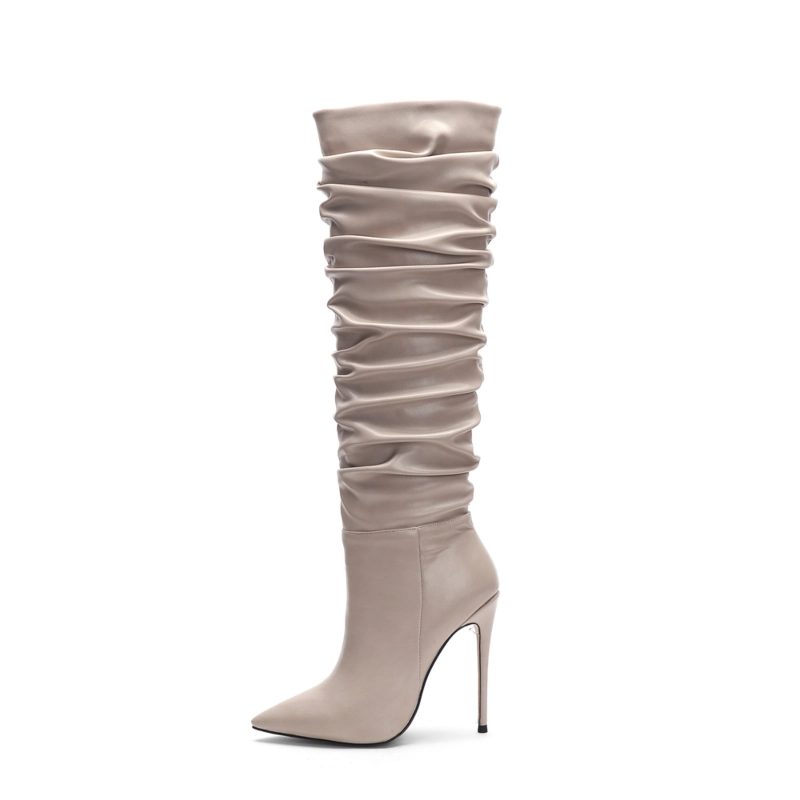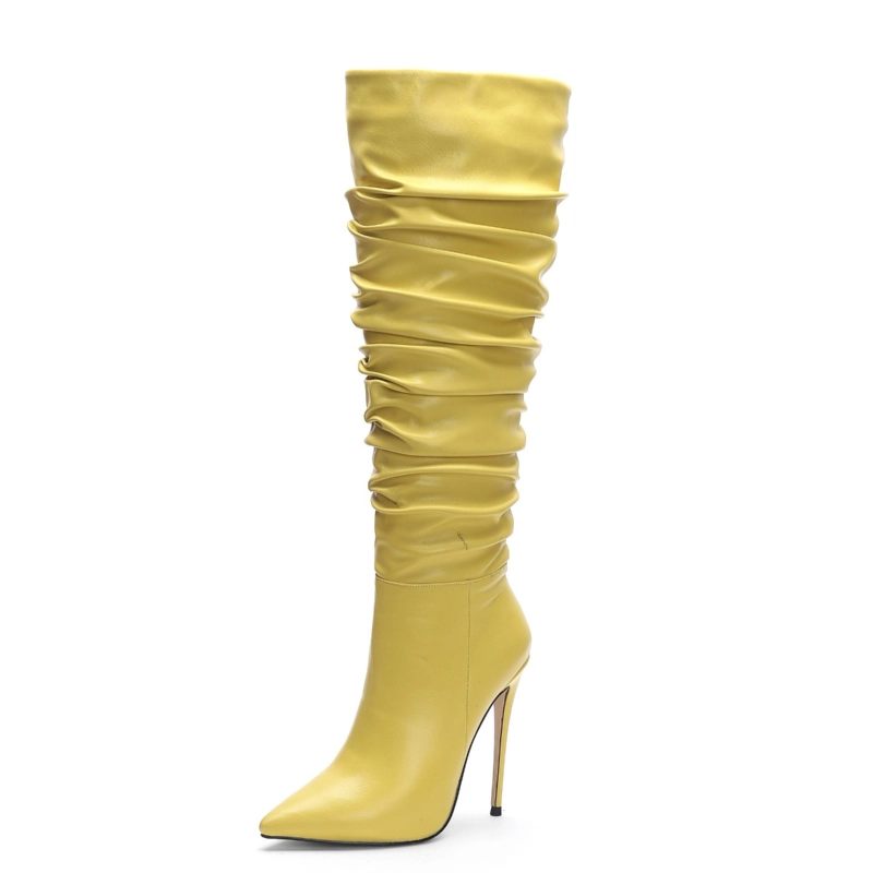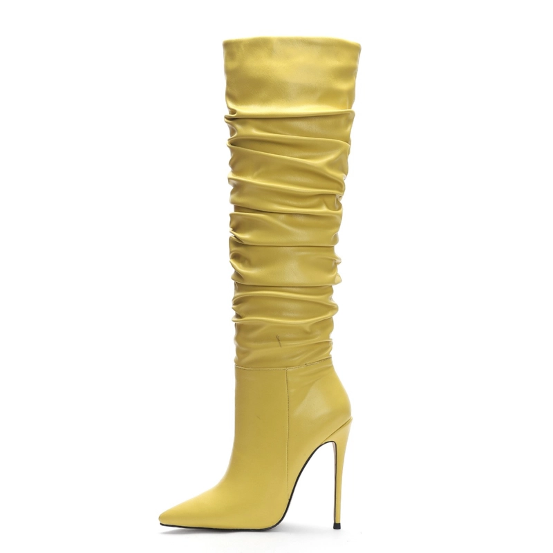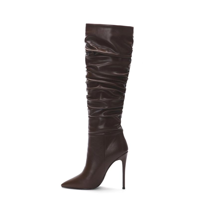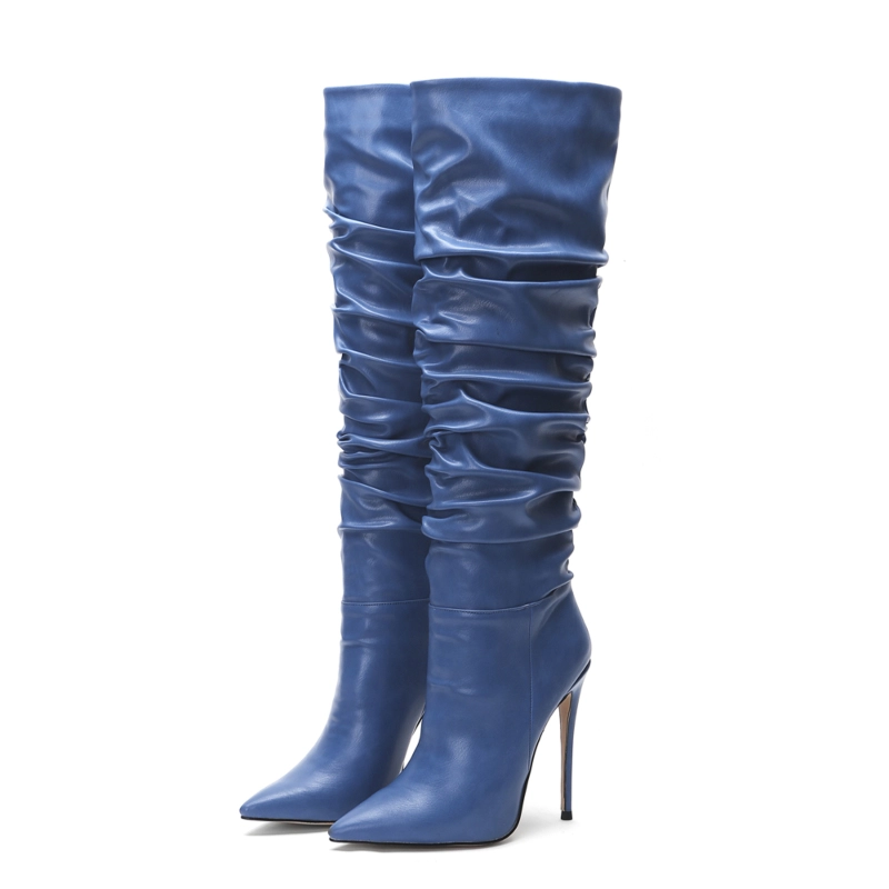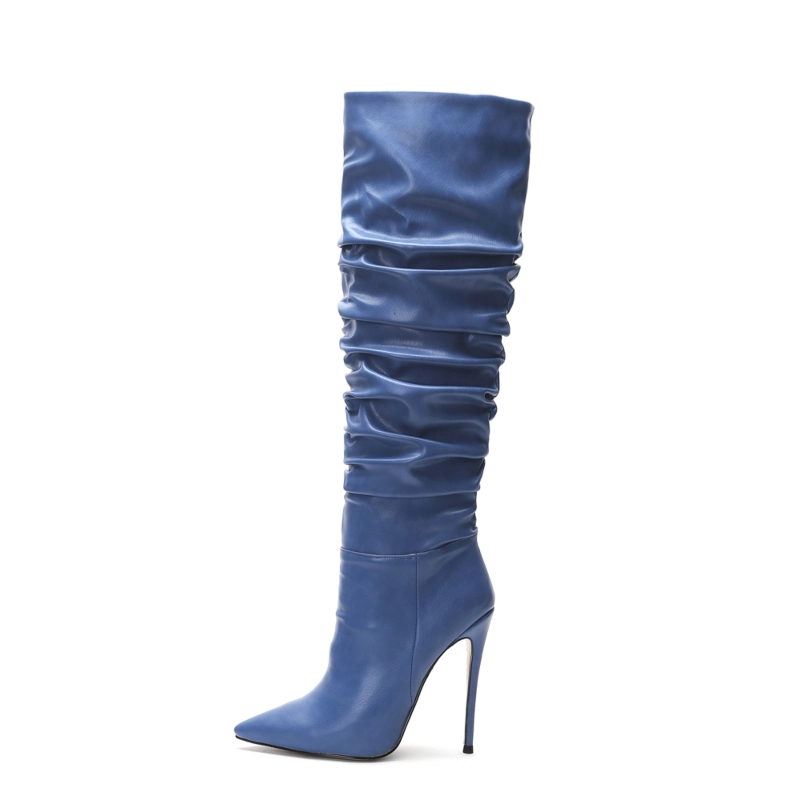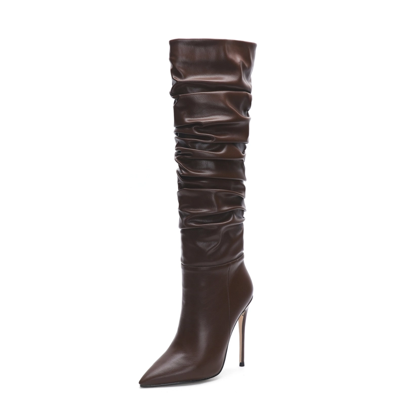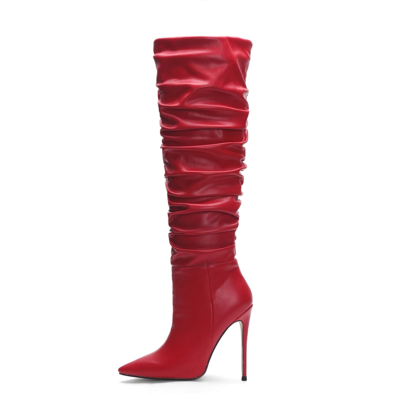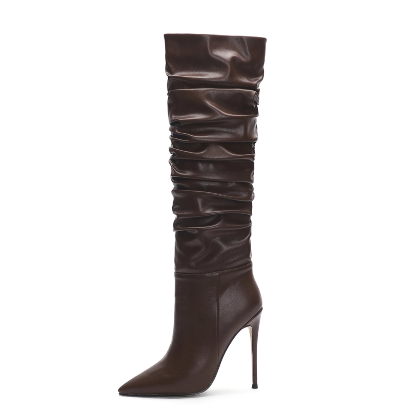 Women’s Vegan Leather Pointed Toe Stilettos Knee High Heel Sclouch Booties